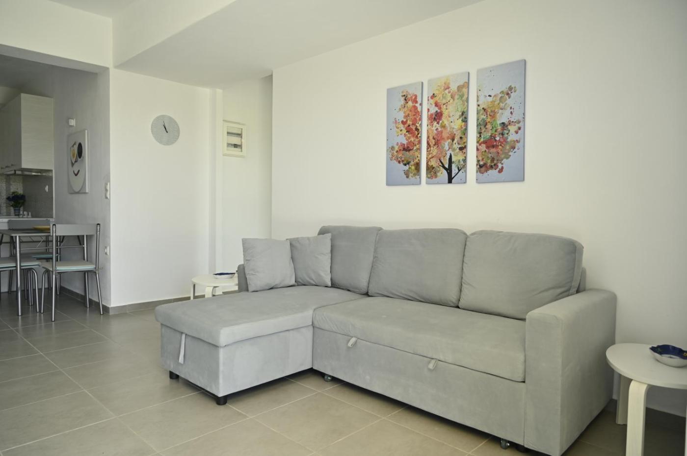 Apartment - Ground Floor. Boasting a private entrance, this air-conditioned apartment includes 1 living room, 1 separate bedroom and 1 bathroom with a walk-in shower and a bath or a shower. In the well-fitted kitchen, guests will find a stovetop, a refrigerator, kitchenware and an oven. Featuring a terrace with sea views, this apartment also offers a washing machine and a flat-screen TV. The unit has 4 beds. ;